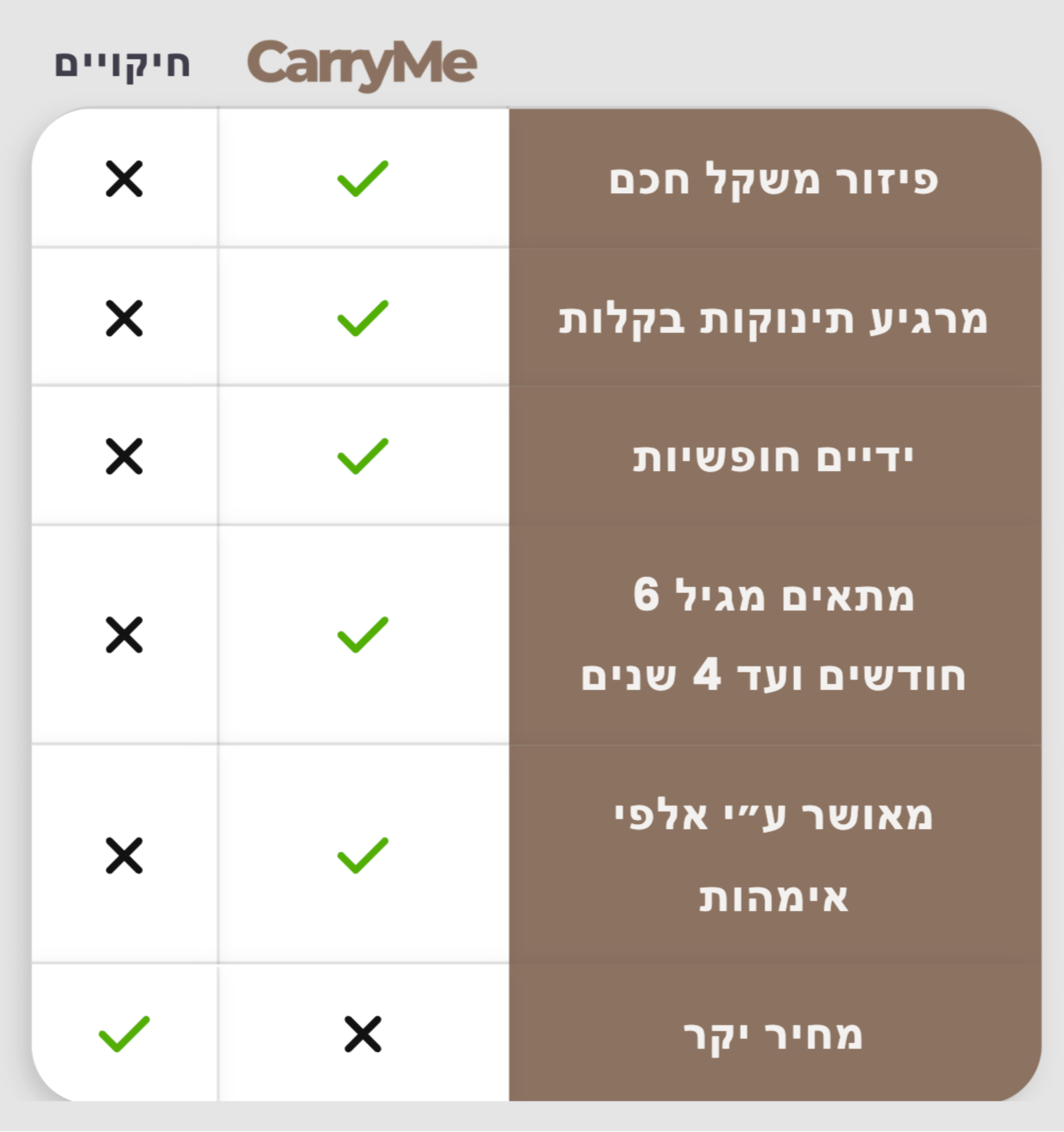 💡 87% אימהות משתמשות במנשא לפחות 3 פעמים ביום.